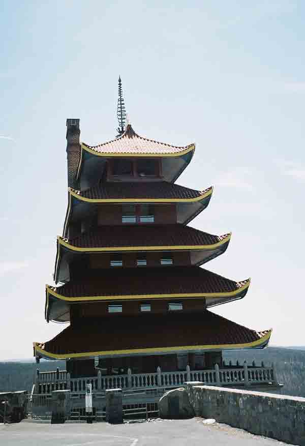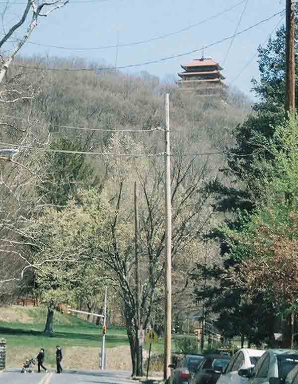 | Is it Japan? No, it's Reading, at the foot of Mount Penn, on top of which is a pagoda. To get to the pagoda, we are going to drive up the same steep road Charles Duryea drove up. It was a big deal when he did it in 1892 in the first gasoline-powered car built in the U.S. |