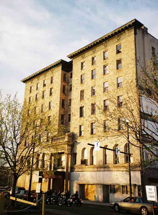 | The sun sets on The Sterling Hotel where my parents had their wedding reception in 1948. Built over 100 years ago, The Sterling was Wilkes Barre's finest for decades. I recall having lunch there around 1980 when it was a flophouse. It is now boarded up. |